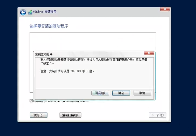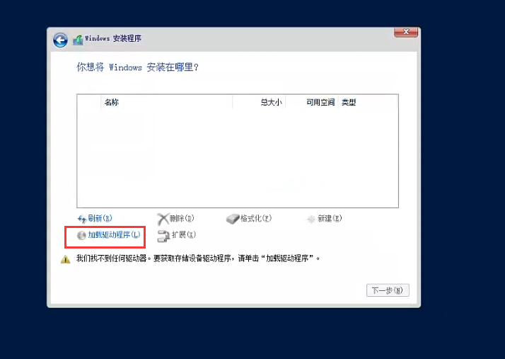 没有发现磁盘属于正常 所以我们要 “加载驱动程序”