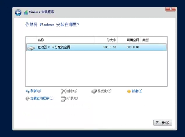 如图 硬盘识别出来了 剩下的步骤和正常安装系统一样