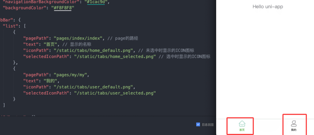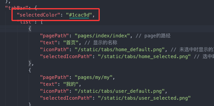 "selectedIconPath": "/static/tabs/home_selected.png" // 选中时显示的ICON图标