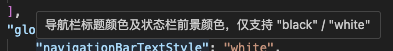 "navigationBarTextStyle": "white",