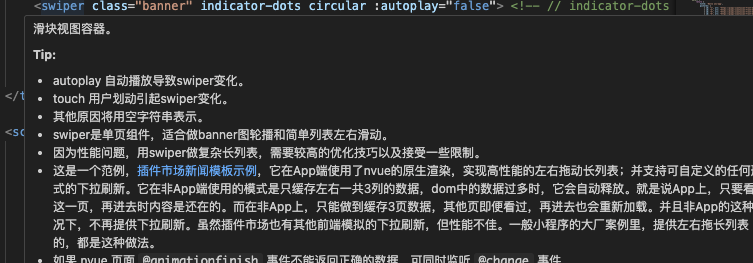 <swiper class="banner" indicator-dots circular :autoplay="false"> <!-- // indicator-dots 就是是否显示图标 circular就是能不能滑动 autoplay是自动播放 -->