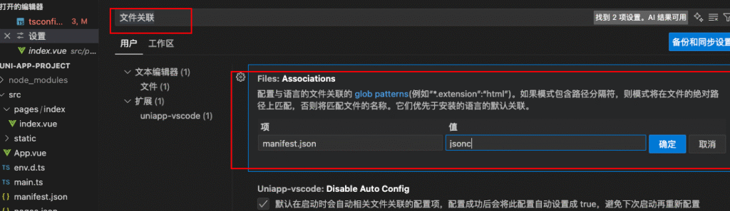 }设置关于manifest.json的文件关联: