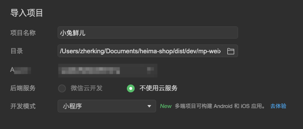 最后我们要到微信开发者工具来导入内容: