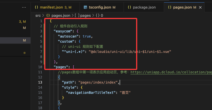 pnpm i @dcloudio/uni-ui接下来的话按照官方的指示,我们还需要配置一下easycom: