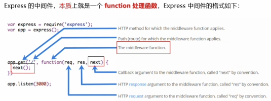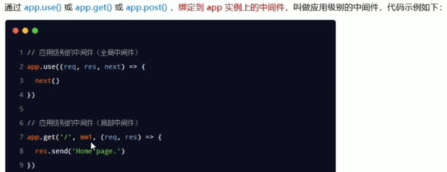 不使用 app.use() 定义的中间件,叫做局部生效的中间件,示例代码如下: