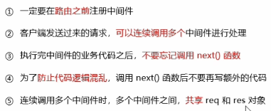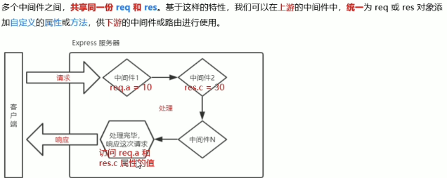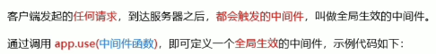 可以使用 app.use() 连续定义多个全局中间件。客户端请求到达服务嚣之后,会按照中间件定义的先后顺序依次进行调用,示例代码如下: