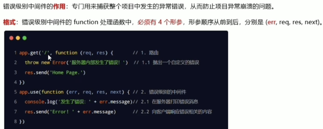 注意:错误级别的中间件,必须注册在所有路由之后!