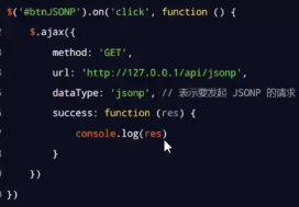 调用$.ajax()函数,提供JSONP 的配置选项,从而发起JSONP 请求,示例代码如下:
