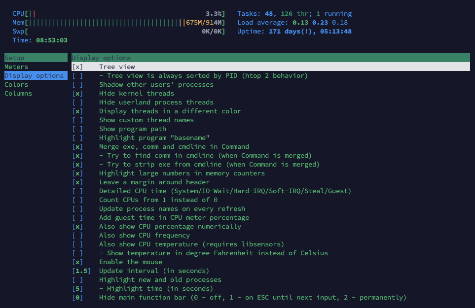 htop -d 时间(10=1秒)默认单位是十分之一秒