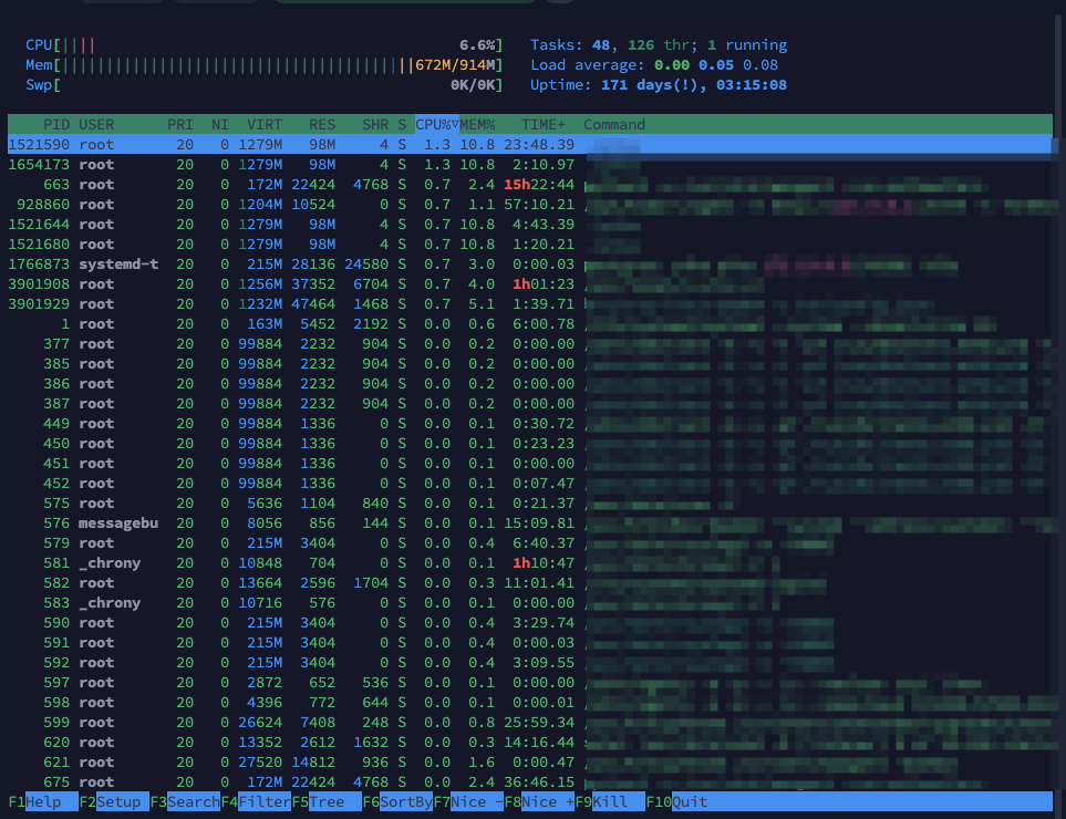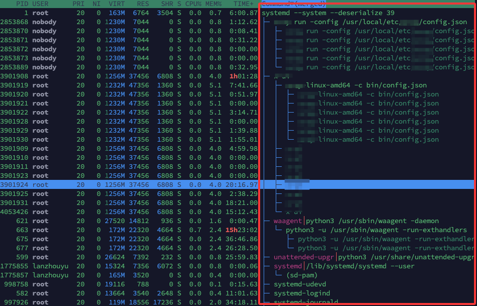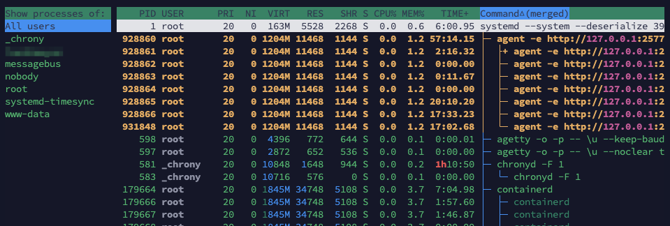 apt install htop虽然说市面上还有一个叫 btop 的,但是有点花哨似乎不太合适专业的运维使用,当我们安装完htop之后输入以下命令就可以打开了: