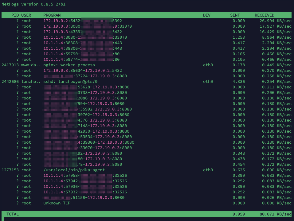 -l | 实时流量显示 | 精度一般,不如 iftop |