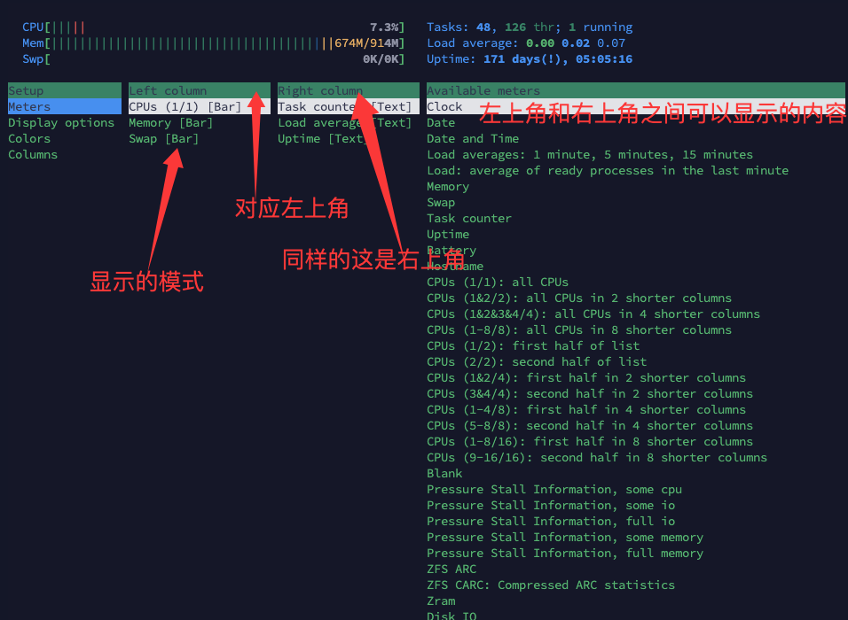 右上角:主要显示任务数量、平均负载以及系统的运行时间